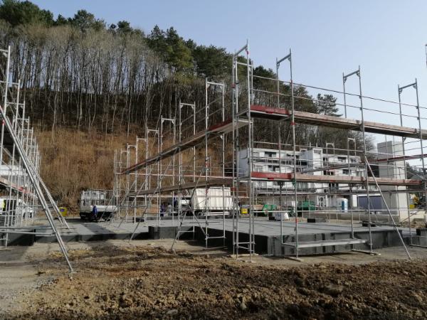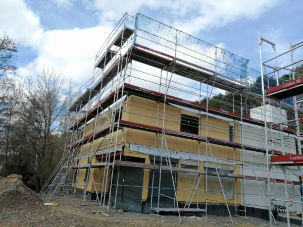 Rosenthalquartier vorgebautes Gerüst für Holzrahmenbauweise mehrstöckig